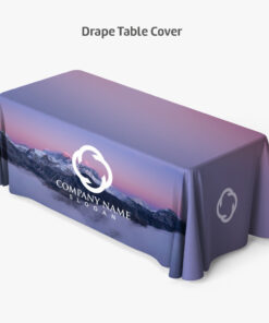 Our standard table cover is a great table topper for trade shows, exhibitions and presentations. Our table covers are dye sublimated and are 100% washable. This table cover is made from our 8.8 oz. polyester table fabric sized for a 72″ x 30″ x 30″ display table. The table cover is sewn with rounded corners and hangs approximately 2″ above the floor.